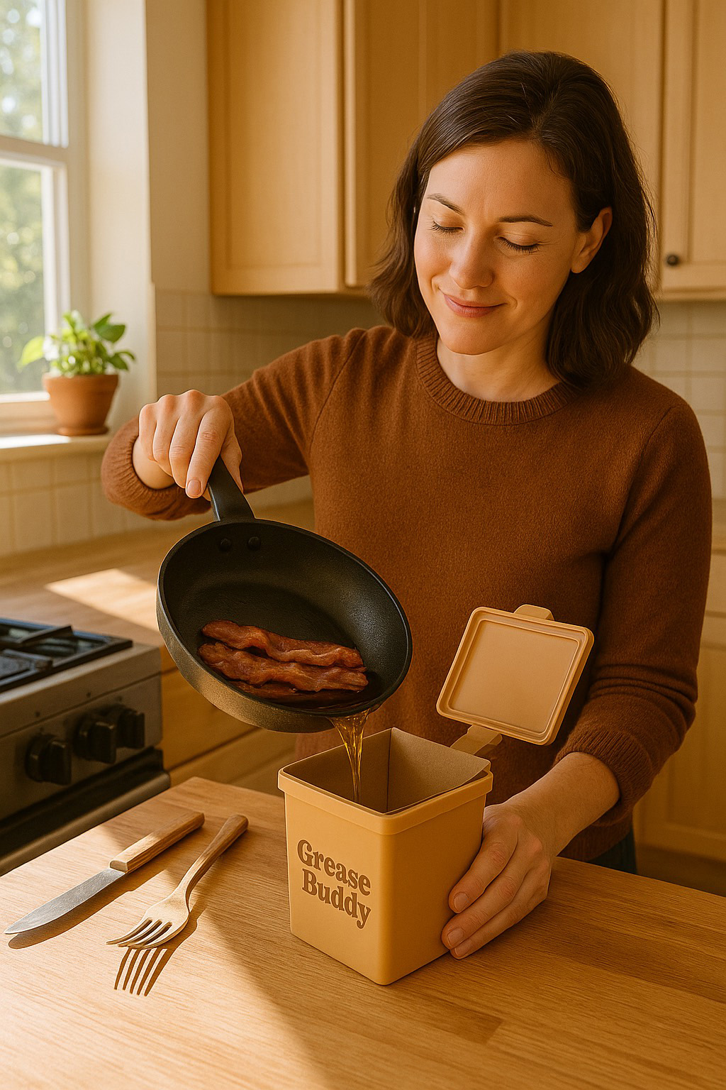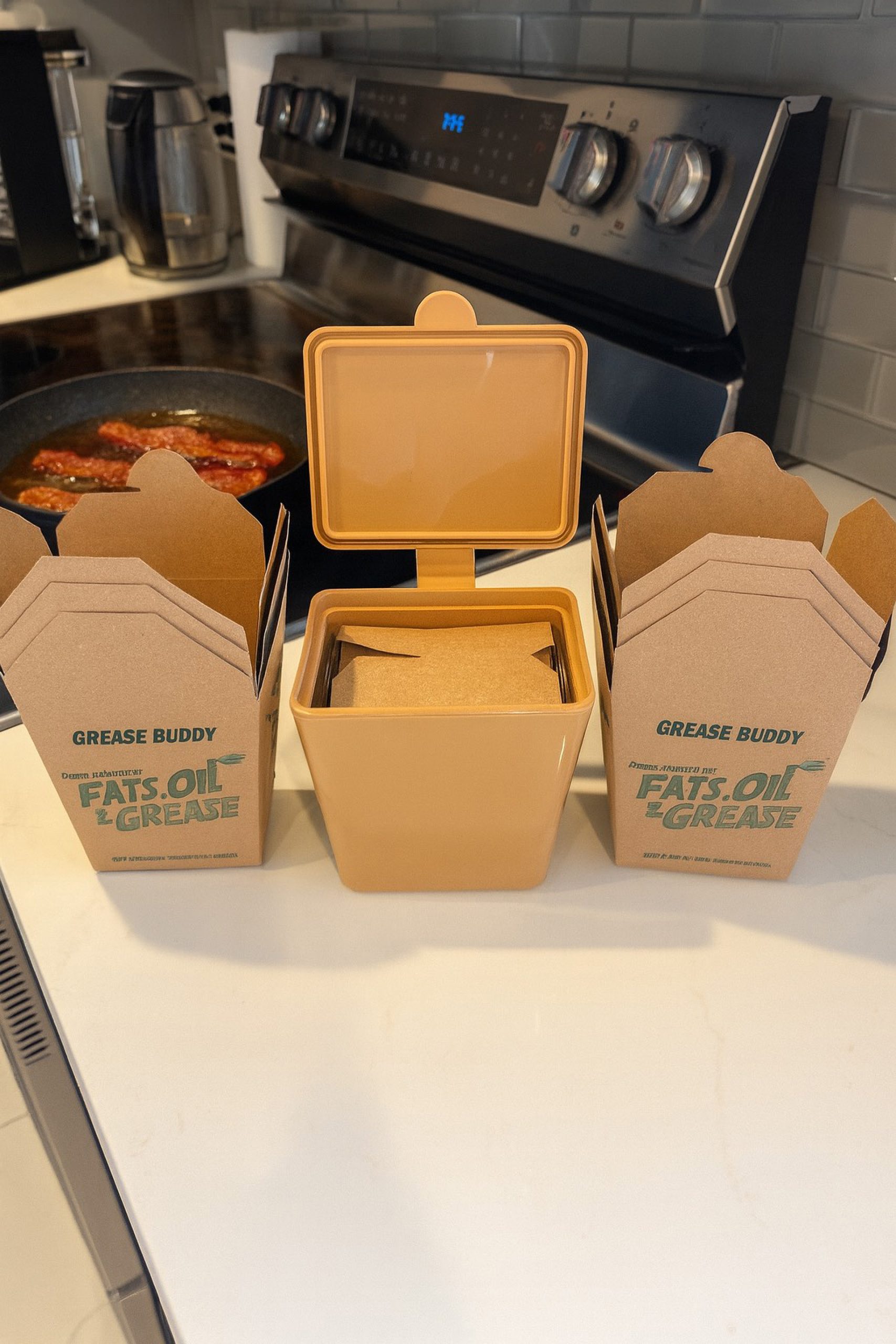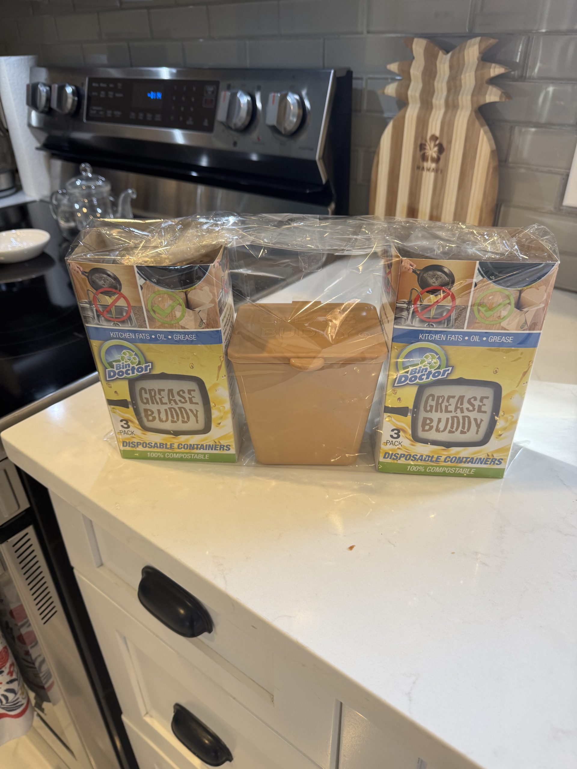 Cooking in the kitchen? Don’t wash leftover meats, animal fat or oils down the sink or toilet where they can cool and congeal in pipes. Instead, put grease in the all NEW 100% Compostable Grease Buddy grease container.
